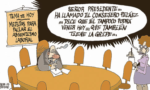 Acabo de leer que un millón de personas deja de ir a trabajar cada día por enfermedad. Aproximadamente un 6% de la población activa. Si sumamos las cifras de desempleo a las del absentismo empezamos a llegar a unos datos terroríficos. Empiece usted a sumar otros colectivos cuya productividad es dudosa y, si nos descuidamos, llegamos a las cifras del chiste.